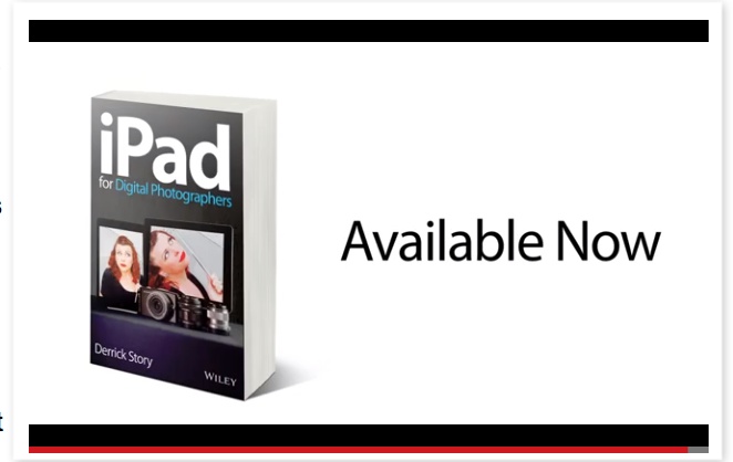 Story #4 - iPad for Digital Photographers is off to a great start, in large part thanks to the support of our virtual camera club. For those of you who have purchased the book and posted a review, a hearty thank you. I love the support you're giving. If you haven't ordered your copy yet, I encourage you to do so. I think you'll very much enjoy the book.