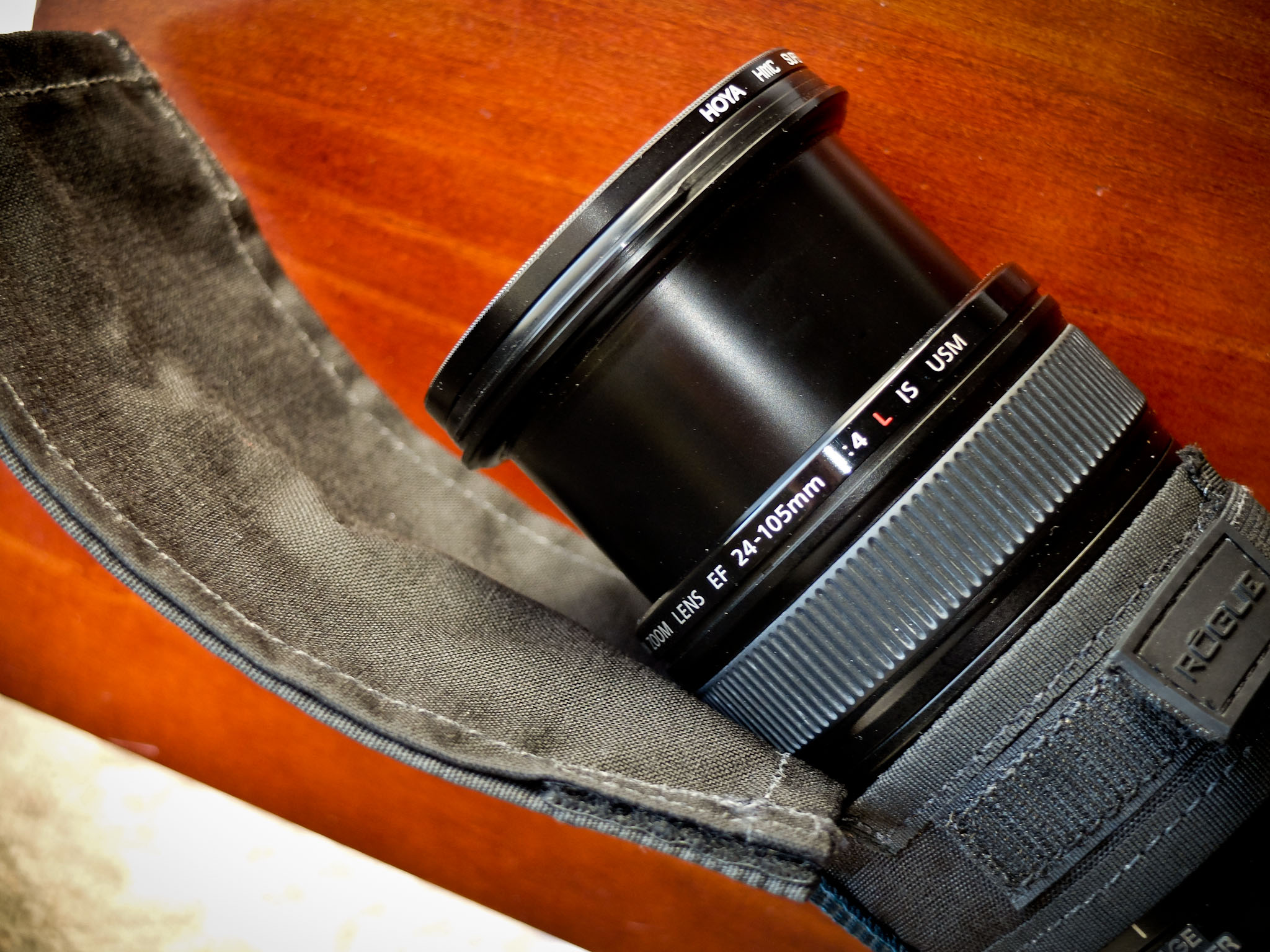 But, if I want serious flare protection for my lens, I leave the black cloth on and attach the FlashBender to my lens using the adjustable strap. In this photo I'm using it with a Canon 24-105mm f/4 L zoom on a 5D Mark II. Unlike a traditional lens hood, the FlashBender can be positioned exactly as needed to block the sun from striking the front of your lens.
