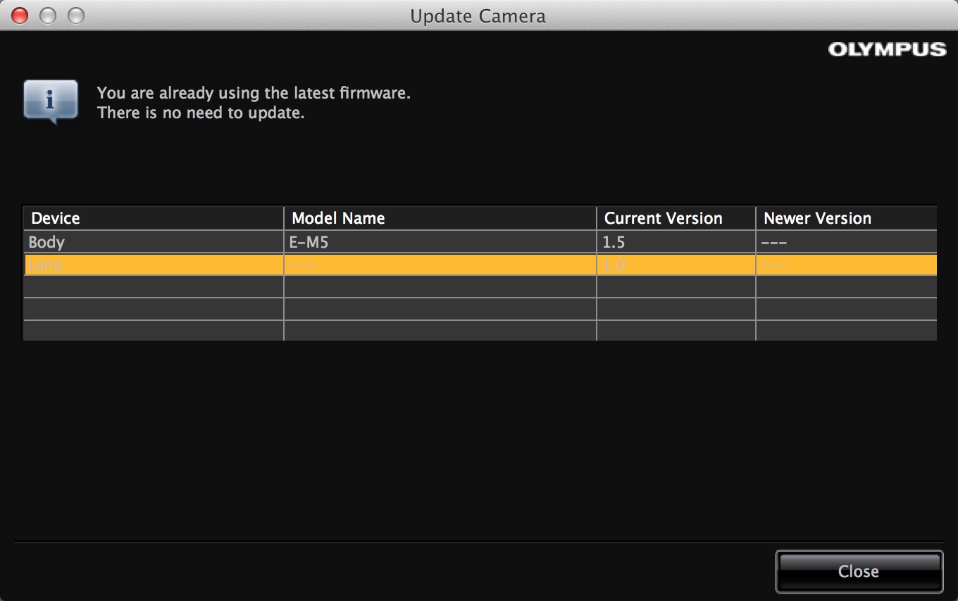 om-d_firmware_update.jpg The Olympus Camera Updater is an easy way to upload new firmware.