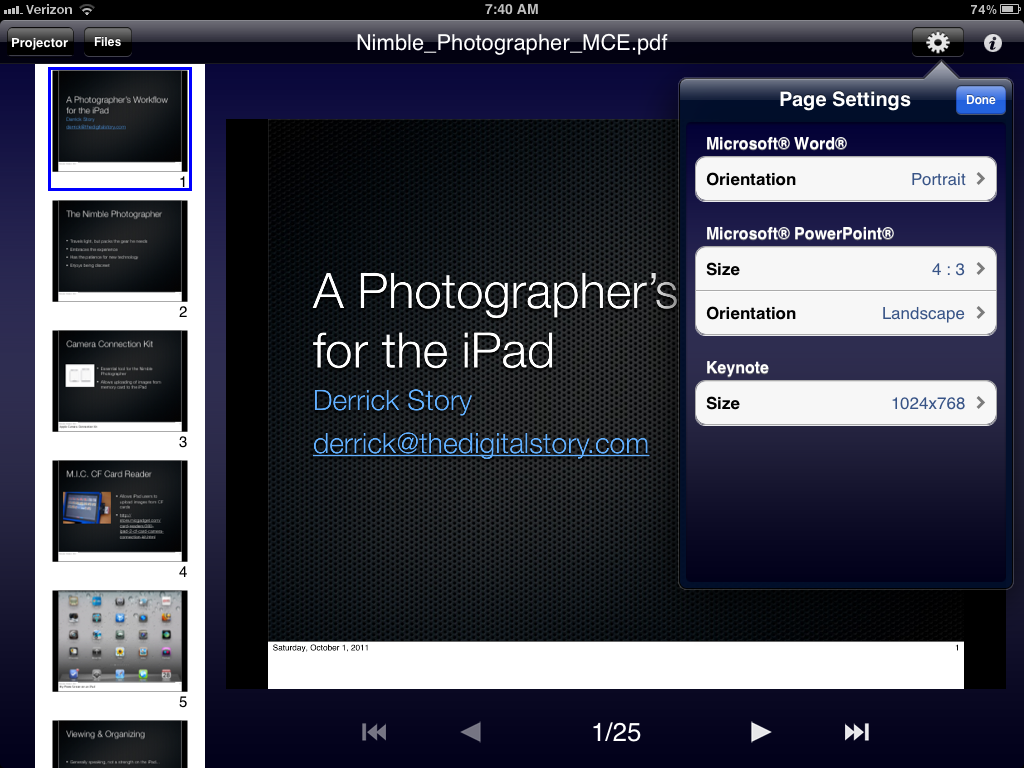 And what I really like about the Epson PowerLite projectorsis that they're about the size of a laptop. So you can transport the projector and the iPad in a standard size messenger bag... and be a very nimble presenter.