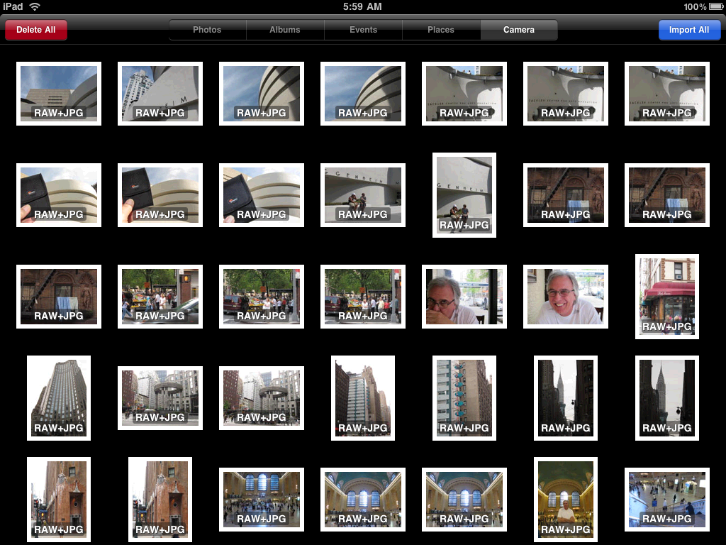 Imported Raw+Jpeg pairs on an iPad using the Camera Connection Kit. What do you do from here? Click on image to enlarge.