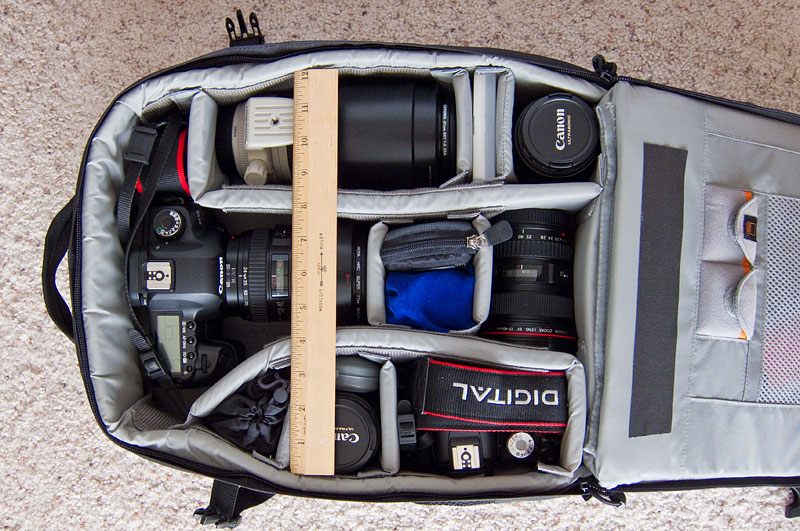 The Pro Runner 300 AW fills a different need. It holds primarily photo gear (although the iPad may change that) and is used for more intensive photography jobs, or for situations when I can take two bags -- one for photo gear and another for computer stuff. Above all, what I really like about the Pro Runner 300 AW is its slim profile that allows me to tote it just about anywhere, even on a crowded city bus.